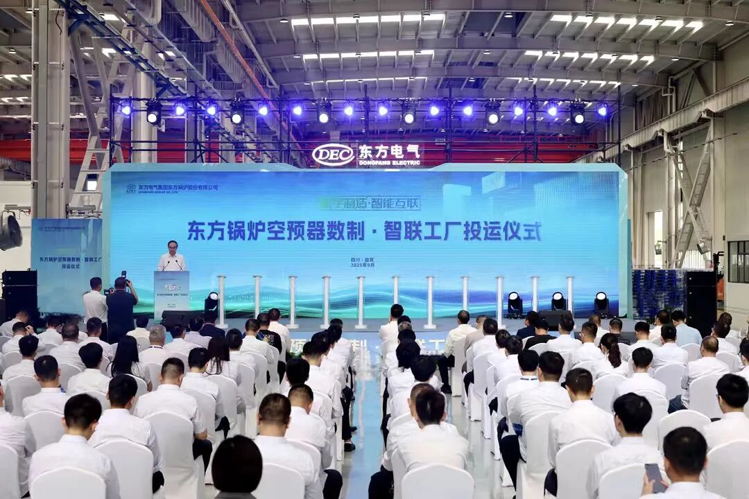9月25日,行业首个空预器数制·智联工厂在东方锅炉自贡基地正式投运。自贡市委书记曾洪扬,自贡市副市长张洪涛,自贡市经信局局长余泓,自流井区委书记万春霞,大安区委副书记、区长唐小华;四川华电珙县发电有限公司党委书记、董事谢明均,四川白马循环流化床示范电站有限责任公司党委书记、董事长彭卫红,中煤广元能源有限公司党委书记、总经理魏凤文,国能四川华蓥山发电有限公司副总经理肖海林,重庆合川发电有限公司副总经理周云,重庆旗能电铝有限公司技术部部长徐海超;东方电气集团科技信息部数字化管理室副主任周洋,东方数科总经理、党委副书记熊建坤,东方锅炉党委书记、董事长林光平,副总经理刘自军参加投运仪式。东方锅炉副总经理刘松主持仪式。